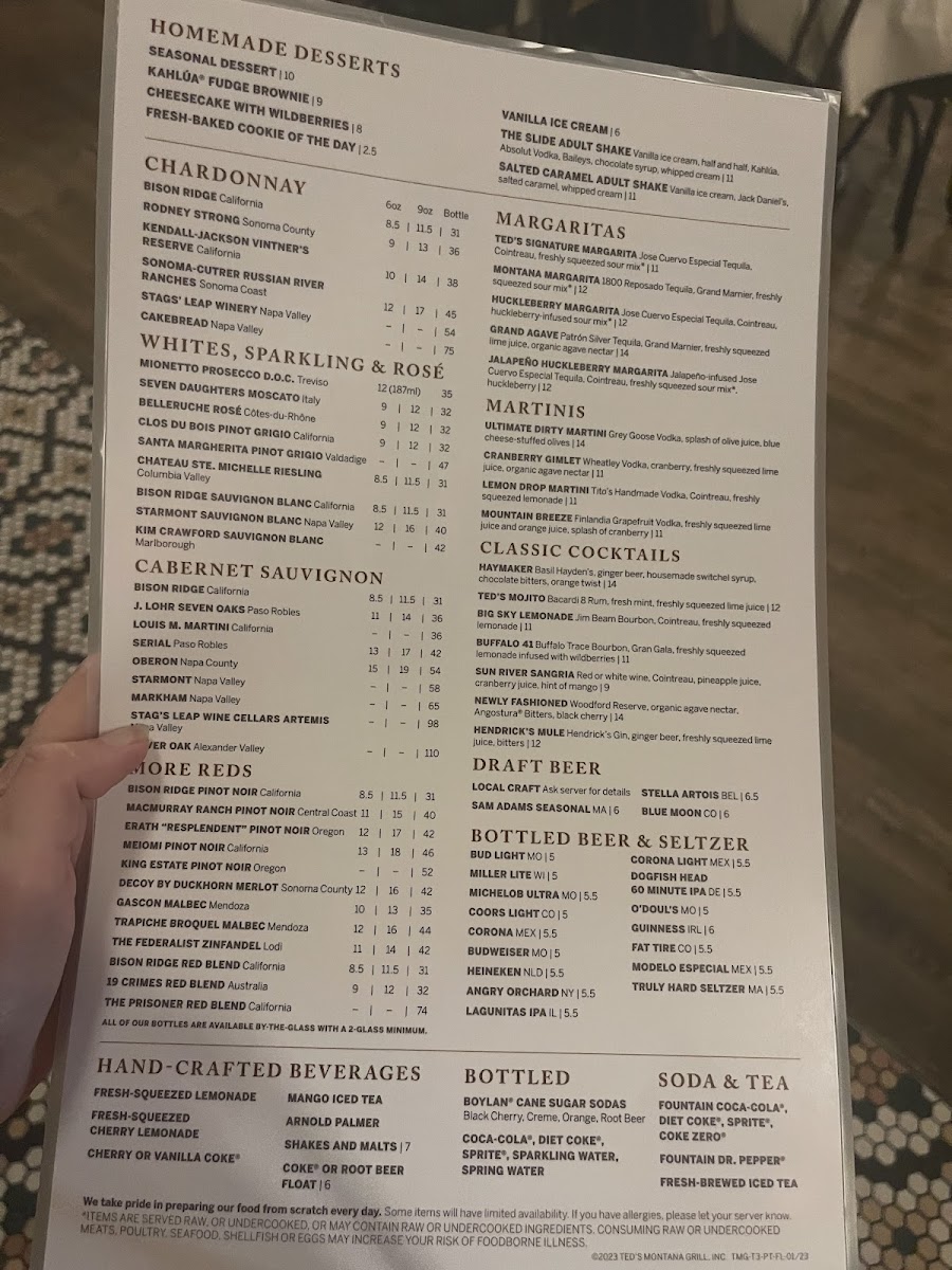 Ted's Montana Grill Jacksonville Menu